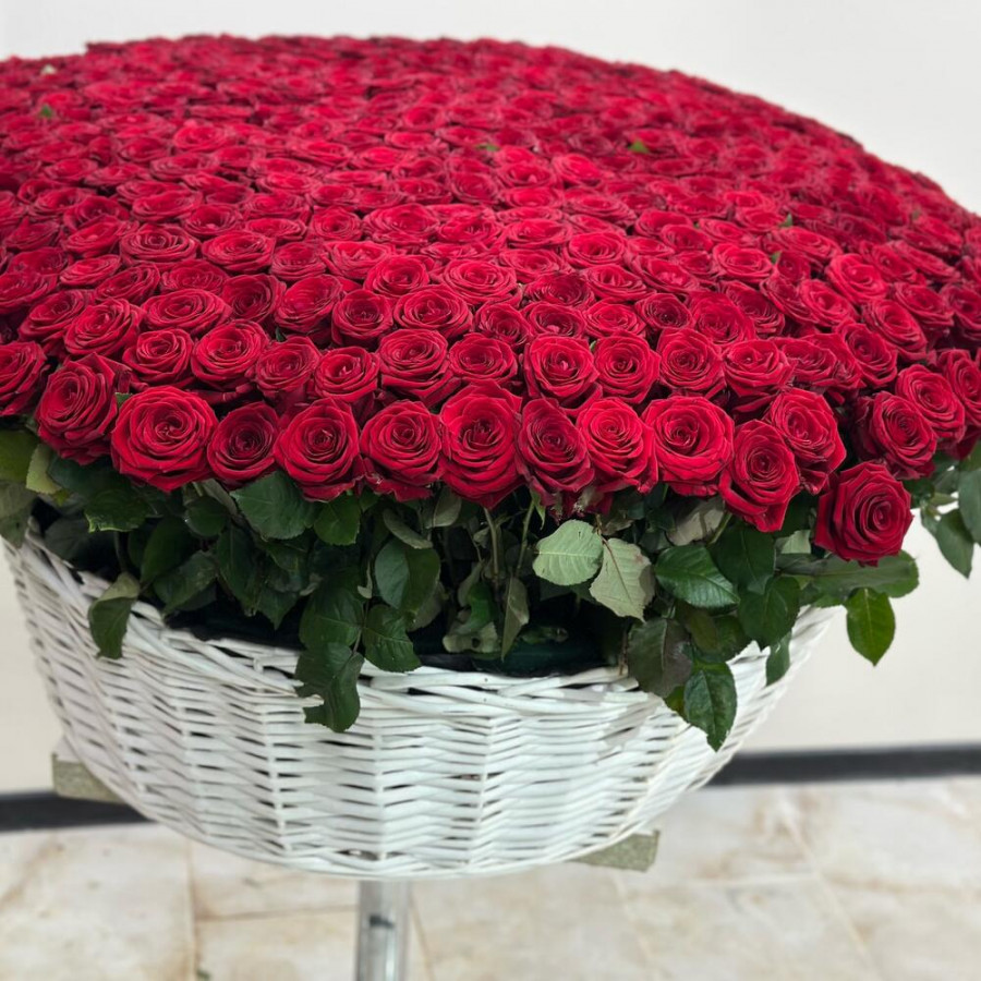 Букет из 501 красной розы в белой корзине в Новосибирске